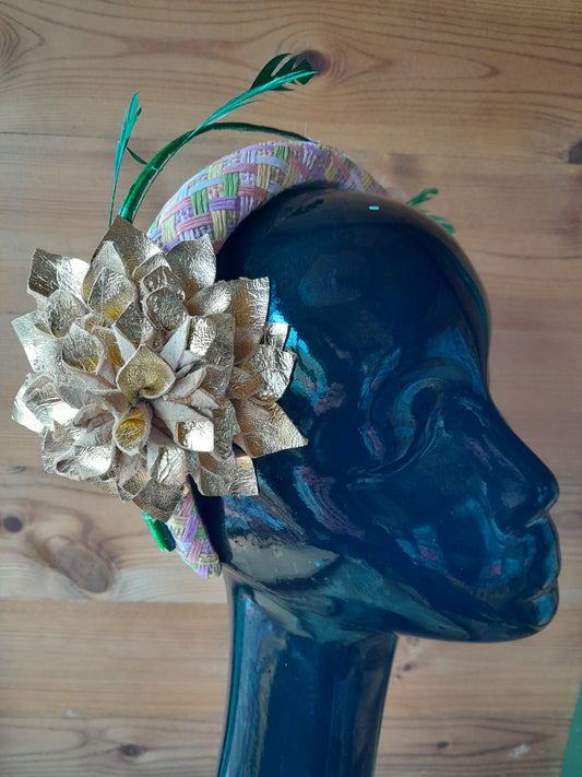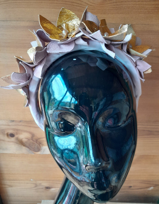 Golden girl Leather flower hairband
