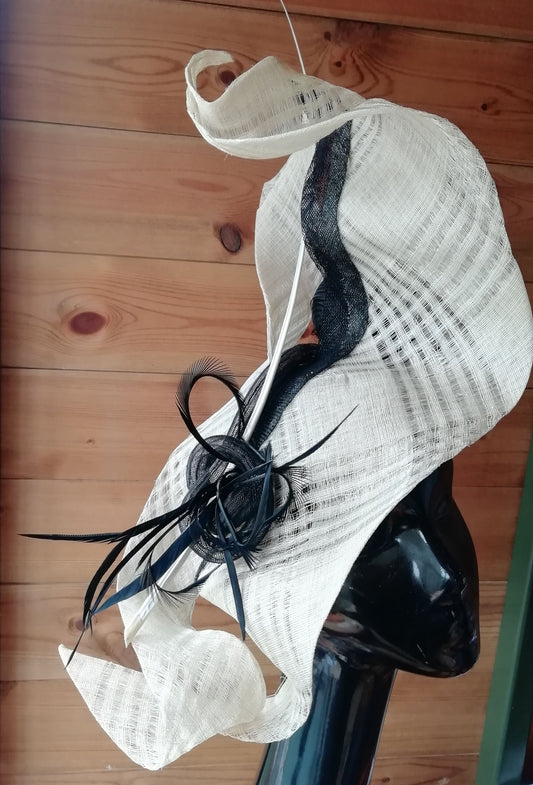 Ivory lattice sinamay wave fascinator