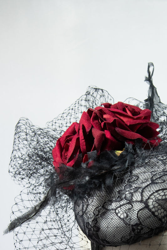 Black lace mini beret with red roses