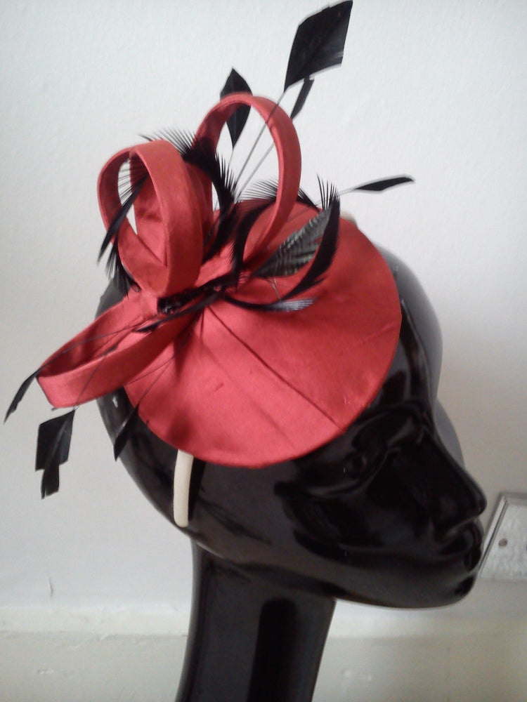 Large dark navy sinamay saucer hat with Fuschia pink orchids