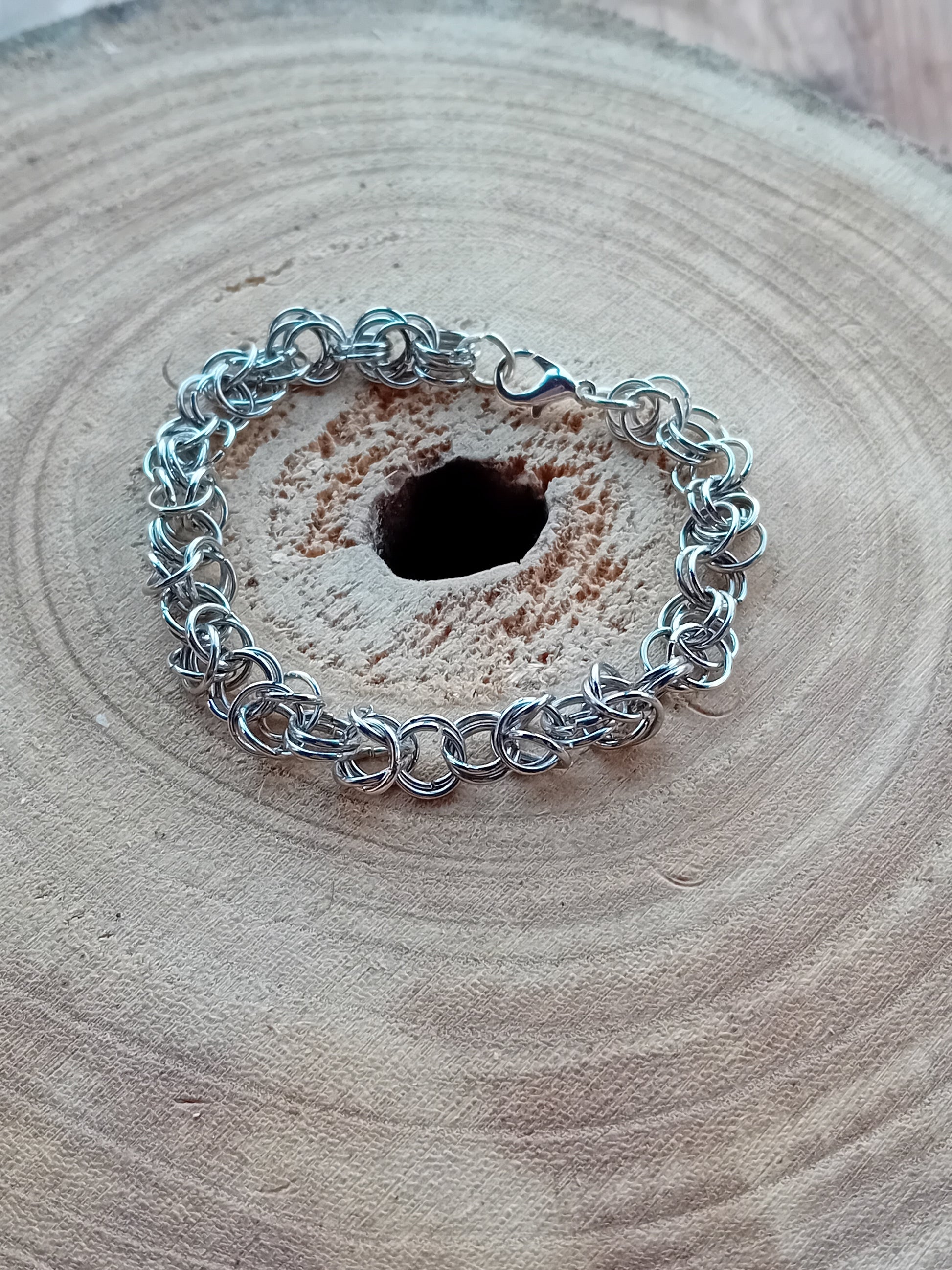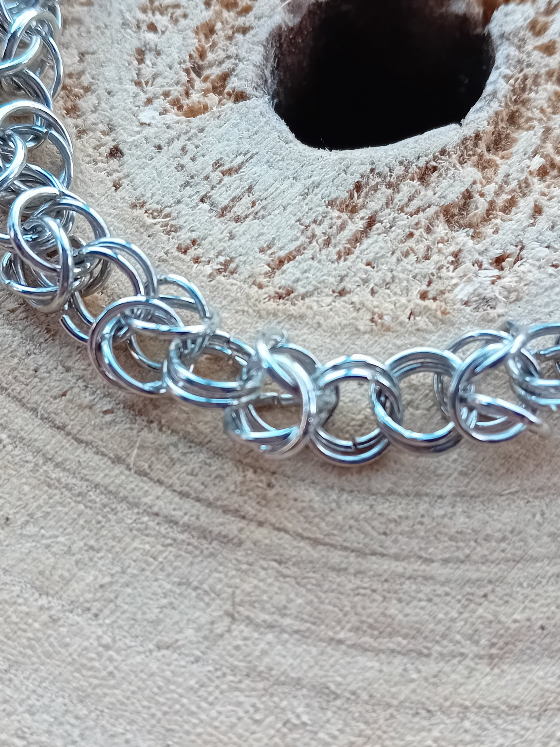 Aluminium chainmail bracelet in byzantine weave. Length is